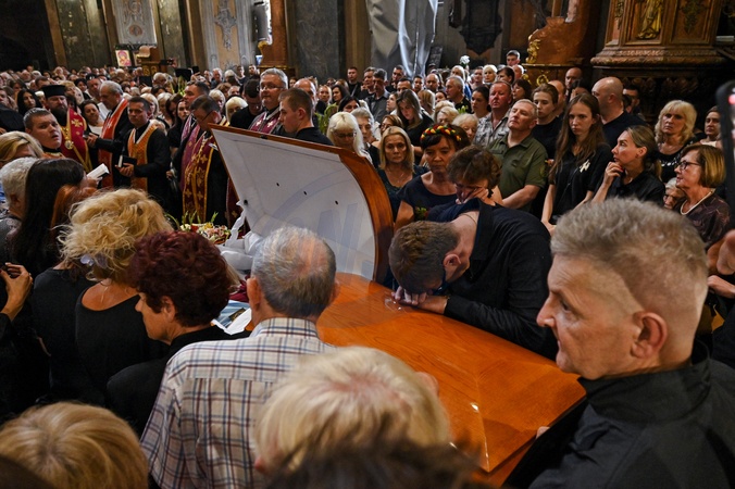 LVIV, UKRAINE - JULY 21, 2024 - People pay their last respects to linguistic professor and former MP Iryna Farion, who was shot dead on the street on July 19, during the memorial service at the Saints Peter and Paul Garrison Church, Lviv, western Ukraine., Credit:Anastasiia Smolienko / Avalon