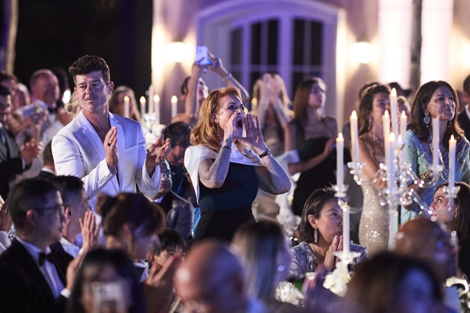 Exclusif - No Web - Robin Thicke, Sarah Ferguson, Duchess of York - Diner de charité "Knights of Charity" au Château de la Croix des Gardes à Cannes le 22 juillet 2024. L'actrice Sharon Stone a triomphalement animé le prestigieux Knights of Charity Gala au magnifique Château de La Croix des Gardes. Cet événement a été accueilli avec un grand enthousiasme et a été marqué par un mélange unique de glamour, d'élégance et de philanthropie. Organisée dans le lieu emblématique connu pour avoir accueilli des légendes telles que Grace Kelly et Cary Grant, la soirée a réuni des personnalités éminentes du monde entier. Le gala, présenté en partenariat avec Ulyssia, a été orchestré par le célèbre philanthrope M. Gatsby, qui a déclaré : "Lors du Knights of Charity Gala, de cette année, nous adhérons au principe selon lequel 'La générosité est la clé de notre avenir.' Ensemble, nous pouvons avoir un impact significatif." Les invités ont pu apprécier des performances musicales inoubliables d'A. Bocelli, L. Stansfield, R. Thicke, DJ M. Ronson et M. Solveig. La vente aux enchères, menée par S. de Pury, a été l'un des moments forts de la soirée, mettant en vedette l'une des magnifiques peintures de Sharon Stone. Ses œuvres seront d'ailleurs exposées au musée Ara Pacis de Rome en novembre prochain. The Knights of Charity Gala s'est établi comme l'un des événements caritatifs les plus importants au monde. Cette troisième édition cannoise a d'ailleurs soutenu plusieurs causes importantes, notamment : - "Save the Children", "Children UNICEF","Sarah's Trust for Children", "ABF for Children", "DeliverFund.org", "Hilandar 4 Humanity, Children in Need", "Gisele Bündchen Foundation" Le "Knights of Charity Humanity Award" a été remis à A. Bocelli pour ses contributions philanthropiques exceptionnelles et ses 30 ans de carrière remarquable. Le soutien généreux d'Ulyssia, la communauté résidentielle la plus exclusive au monde, a été crucial pour le succès du gala. F. Binder, fondateur et président d'Ulyssia, a déclaré : "Soutenir Knights of Charity s'aligne avec notre engagement à avoir un impact positif dans le monde." Des remerciements particuliers ont également été adressés à M. C. Parker propriétaire du Château de la Croix des Gardes pour sa contribution inestimable. Knights of Charity Gala est bien plus qu'un événement mondain ; c'est une soirée dédiée à la générosité et à l'engagement envers les droits humanitaires essentiels. Cet événement s'impose désormais comme l'une des plateformes caritatives les plus importantes au monde. © Cyril Moreau/Bestimage Exclusive - NO WEB - For Germnay call for price - "Knights of Charity" charity dinner at the Château de la Croix des Gardes in Cannes on July 22, 2024. Actress Sharon Stone triumphantly hosted the prestigious Knights of Charity Gala at the magnificent Château de La Croix des Gardes. The event was met with great enthusiasm and was marked by a unique blend of glamour, elegance and philanthropy. Held at the iconic venue known for hosting legends such as Grace Kelly and Cary Grant, the evening brought together eminent figures from around the world. The gala, presented in partnership with Ulyssia, was orchestrated by renowned philanthropist Mr. Gatsby, who said: "At this year's Knights of Charity Gala, we embrace the principle that 'Generosity is the key to our future.' Together, we can make a meaningful impact." Guests were treated to unforgettable musical performances by A. Bocelli, L. Stansfield, R. Thicke, DJ M. Ronson and M. Solveig. The auction, conducted by S. de Pury, was one of the highlights of the evening, featuring one of Sharon Stone's magnificent paintings. Her works will be exhibited at the Ara Pacis Museum in Rome next November. The Knights of Charity Gala has established itself as one of the most important charity events in the world. This third edition in Cannes supported several important causes, including: - "Save the Children", "Children UNICEF", "Sarah's Trust for Children", "ABF for Children", "DeliverFund.org", "Hilandar 4 Humanity, Children in Need", "Gisele Bündchen Foundation" The "Knights of Charity Humanity Award" was presented to A. Bocelli for his exceptional philanthropic contributions and his remarkable 30-year career. The generous support of Ulyssia, the world's most exclusive residential community, was crucial to the success of the gala. F. Binder, Founder and Chairman of Ulyssia, said: "Supporting Knights of Charity aligns with our commitment to making a positive impact in the world.” Special thanks were also extended to Mr. C. Parker, owner of Château de la Croix des Gardes, for his invaluable contribution. The Knights of Charity Gala is much more than a social event; it is an evening dedicated to generosity and commitment to essential humanitarian rights. The event has now established itself as one of the most important charitable platforms in the world.