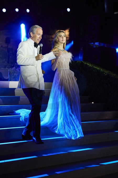 Exclusif - No Web - Simon de Pury et Helena Gatsby - Diner de charité "Knights of Charity" au Château de la Croix des Gardes à Cannes le 22 juillet 2024. L'actrice Sharon Stone a triomphalement animé le prestigieux Knights of Charity Gala au magnifique Château de La Croix des Gardes. Cet événement a été accueilli avec un grand enthousiasme et a été marqué par un mélange unique de glamour, d'élégance et de philanthropie. Organisée dans le lieu emblématique connu pour avoir accueilli des légendes telles que Grace Kelly et Cary Grant, la soirée a réuni des personnalités éminentes du monde entier. Le gala, présenté en partenariat avec Ulyssia, a été orchestré par le célèbre philanthrope M. Gatsby, qui a déclaré : "Lors du Knights of Charity Gala, de cette année, nous adhérons au principe selon lequel 'La générosité est la clé de notre avenir.' Ensemble, nous pouvons avoir un impact significatif." Les invités ont pu apprécier des performances musicales inoubliables d'A. Bocelli, L. Stansfield, R. Thicke, DJ M. Ronson et M. Solveig. La vente aux enchères, menée par S. de Pury, a été l'un des moments forts de la soirée, mettant en vedette l'une des magnifiques peintures de Sharon Stone. Ses œuvres seront d'ailleurs exposées au musée Ara Pacis de Rome en novembre prochain. The Knights of Charity Gala s'est établi comme l'un des événements caritatifs les plus importants au monde. Cette troisième édition cannoise a d'ailleurs soutenu plusieurs causes importantes, notamment : - "Save the Children", "Children UNICEF","Sarah's Trust for Children", "ABF for Children", "DeliverFund.org", "Hilandar 4 Humanity, Children in Need", "Gisele Bündchen Foundation" Le "Knights of Charity Humanity Award" a été remis à A. Bocelli pour ses contributions philanthropiques exceptionnelles et ses 30 ans de carrière remarquable. Le soutien généreux d'Ulyssia, la communauté résidentielle la plus exclusive au monde, a été crucial pour le succès du gala. F. Binder, fondateur et président d'Ulyssia, a déclaré : "Soutenir Knights of Charity s'aligne avec notre engagement à avoir un impact positif dans le monde." Des remerciements particuliers ont également été adressés à M. C. Parker propriétaire du Château de la Croix des Gardes pour sa contribution inestimable. Knights of Charity Gala est bien plus qu'un événement mondain ; c'est une soirée dédiée à la générosité et à l'engagement envers les droits humanitaires essentiels. Cet événement s'impose désormais comme l'une des plateformes caritatives les plus importantes au monde. © Cyril Moreau/Bestimage Exclusive - NO WEB - For Germnay call for price - "Knights of Charity" charity dinner at the Château de la Croix des Gardes in Cannes on July 22, 2024. Actress Sharon Stone triumphantly hosted the prestigious Knights of Charity Gala at the magnificent Château de La Croix des Gardes. The event was met with great enthusiasm and was marked by a unique blend of glamour, elegance and philanthropy. Held at the iconic venue known for hosting legends such as Grace Kelly and Cary Grant, the evening brought together eminent figures from around the world. The gala, presented in partnership with Ulyssia, was orchestrated by renowned philanthropist Mr. Gatsby, who said: "At this year's Knights of Charity Gala, we embrace the principle that 'Generosity is the key to our future.' Together, we can make a meaningful impact." Guests were treated to unforgettable musical performances by A. Bocelli, L. Stansfield, R. Thicke, DJ M. Ronson and M. Solveig. The auction, conducted by S. de Pury, was one of the highlights of the evening, featuring one of Sharon Stone's magnificent paintings. Her works will be exhibited at the Ara Pacis Museum in Rome next November. The Knights of Charity Gala has established itself as one of the most important charity events in the world. This third edition in Cannes supported several important causes, including: - "Save the Children", "Children UNICEF", "Sarah's Trust for Children", "ABF for Children", "DeliverFund.org", "Hilandar 4 Humanity, Children in Need", "Gisele Bündchen Foundation" The "Knights of Charity Humanity Award" was presented to A. Bocelli for his exceptional philanthropic contributions and his remarkable 30-year career. The generous support of Ulyssia, the world's most exclusive residential community, was crucial to the success of the gala. F. Binder, Founder and Chairman of Ulyssia, said: "Supporting Knights of Charity aligns with our commitment to making a positive impact in the world.” Special thanks were also extended to Mr. C. Parker, owner of Château de la Croix des Gardes, for his invaluable contribution. The Knights of Charity Gala is much more than a social event; it is an evening dedicated to generosity and commitment to essential humanitarian rights. The event has now established itself as one of the most important charitable platforms in the world.