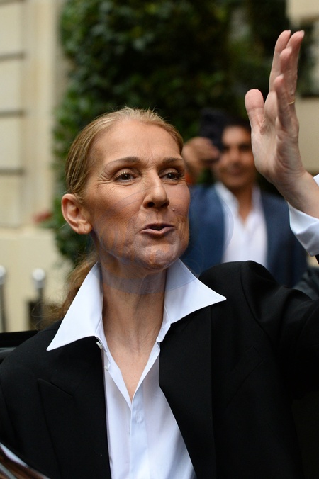 Céline Dion quitte le Royal Monceau pour préparer la cérémonie d'ouverture des Jeux Olympiques (JO 2024) à Paris le 23 juillet 2024. Celine Dion leaves the Royal Monceau to prepare for the opening ceremony of the Olympic Games (2024 Olympic Games) in Paris on July 23, 2024.