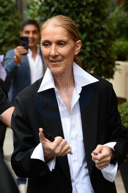 Céline Dion quitte le Royal Monceau pour préparer la cérémonie d'ouverture des Jeux Olympiques (JO 2024) à Paris le 23 juillet 2024. Celine Dion leaves the Royal Monceau to prepare for the opening ceremony of the Olympic Games (2024 Olympic Games) in Paris on July 23, 2024.