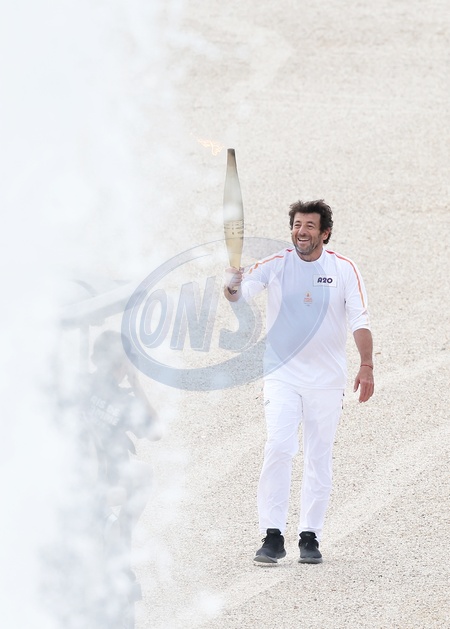 Le chanteur et acteur Patrick Bruel porteur de la flamme olympique des Jeux Olympiques de Paris 2024 (JO) au château de Versailles dans les Yvelines, France, le 23 juillet 2024. © Dominique Jacovides/Bestimage French singer and actor Patrick Bruel carries the Olympic flame of the Paris 2024 Olympic Games (Olympics) at the Palace of Versailles, Yvelines, France, on July 23, 2024.