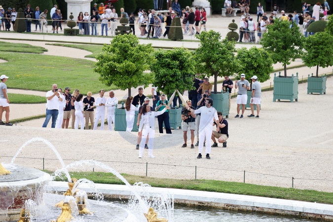 Salma Hayek et Patrick Bruel portent la flamme olympique des Jeux Olympiques de Paris 2024 (JO) au château de Versailles