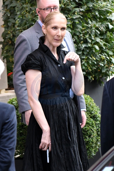 Céline Dion à la sortie de l'hôtel Royal Monceau à Paris avant l'ouverture des Jeux Olympiques (JO) de Paris 2024, à Paris, France, le 24 juillet 2024. Céline Dion leaving the Royal Monceau hotel in Paris before the opening of the Paris 2024 Olympic Games (JO), in Paris, France, July 24, 2024.