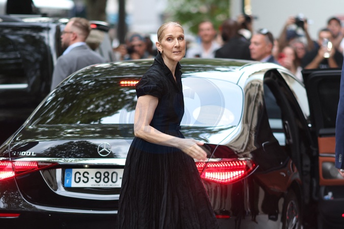 Céline Dion à la sortie de l'hôtel Royal Monceau à Paris avant l'ouverture des Jeux Olympiques (JO) de Paris 2024, à Paris, France, le 24 juillet 2024. Céline Dion leaving the Royal Monceau hotel in Paris before the opening of the Paris 2024 Olympic Games (JO), in Paris, France, July 24, 2024.