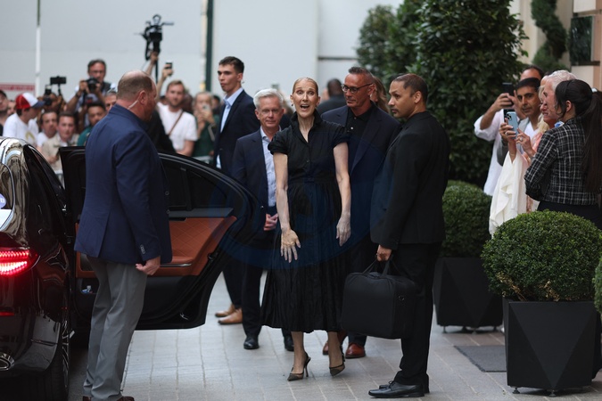 Céline Dion à la sortie de l'hôtel Royal Monceau à Paris avant l'ouverture des Jeux Olympiques (JO) de Paris 2024, à Paris, France, le 24 juillet 2024. Céline Dion leaving the Royal Monceau hotel in Paris before the opening of the Paris 2024 Olympic Games (JO), in Paris, France, July 24, 2024.