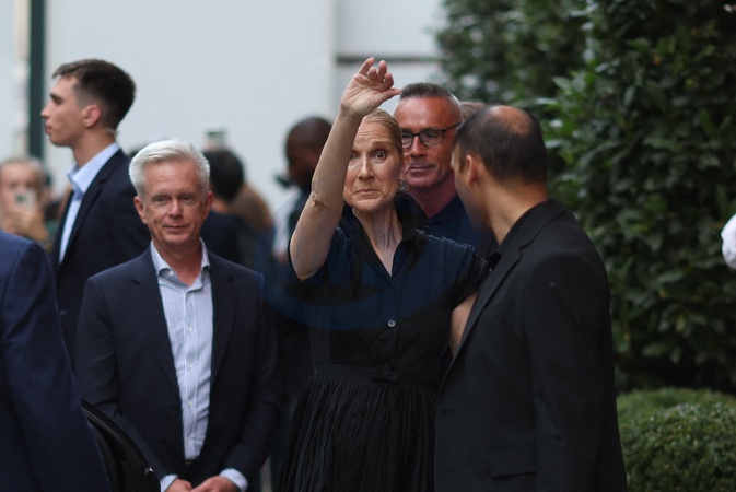 Céline Dion à la sortie de l'hôtel Royal Monceau à Paris avant l'ouverture des Jeux Olympiques (JO) de Paris 2024, à Paris, France, le 24 juillet 2024. Céline Dion leaving the Royal Monceau hotel in Paris before the opening of the Paris 2024 Olympic Games (JO), in Paris, France, July 24, 2024.