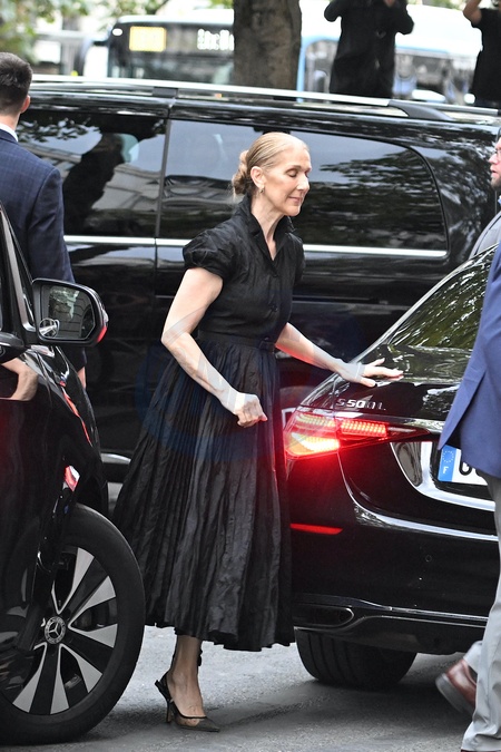 Céline Dion à la sortie de l'hôtel Royal Monceau à Paris avant l'ouverture des Jeux Olympiques (JO) de Paris 2024