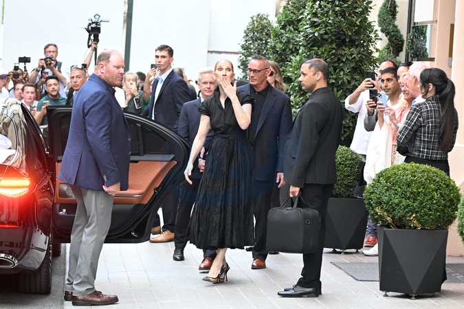 Céline Dion à la sortie de l'hôtel Royal Monceau à Paris avant l'ouverture des Jeux Olympiques (JO) de Paris 2024