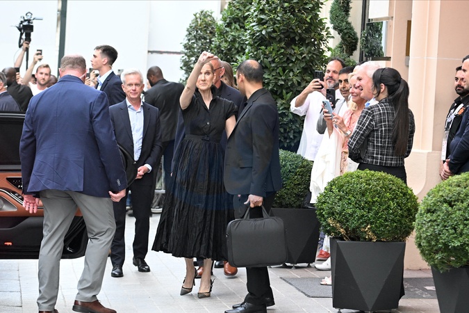 Céline Dion à la sortie de l'hôtel Royal Monceau à Paris avant l'ouverture des Jeux Olympiques (JO) de Paris 2024