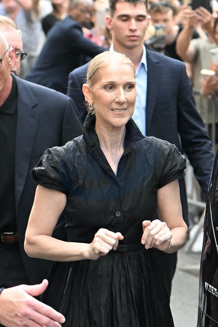 Céline Dion à la sortie de l'hôtel Royal Monceau à Paris avant l'ouverture des Jeux Olympiques (JO) de Paris 2024, à Paris, France, le 24 juillet 2024. Céline Dion leaving the Royal Monceau hotel in Paris before the opening of the Paris 2024 Olympic Games (JO), in Paris, France, July 24, 2024.