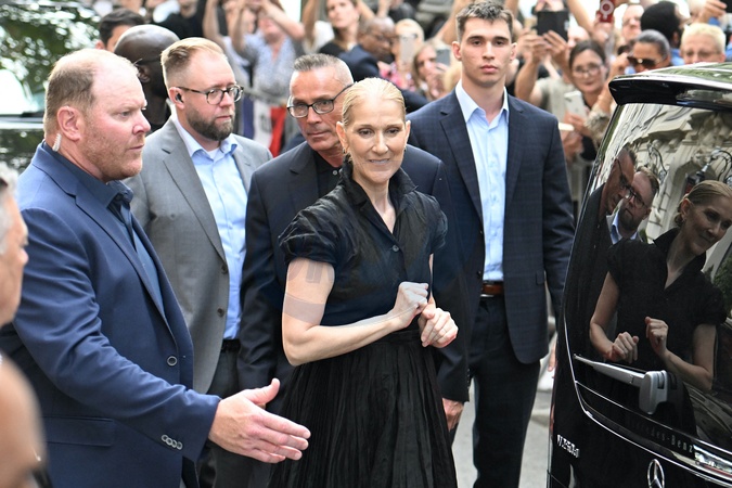 Céline Dion à la sortie de l'hôtel Royal Monceau à Paris avant l'ouverture des Jeux Olympiques (JO) de Paris 2024, à Paris, France, le 24 juillet 2024. Céline Dion leaving the Royal Monceau hotel in Paris before the opening of the Paris 2024 Olympic Games (JO), in Paris, France, July 24, 2024.