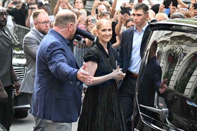 Céline Dion à la sortie de l'hôtel Royal Monceau à Paris avant l'ouverture des Jeux Olympiques (JO) de Paris 2024, à Paris, France, le 24 juillet 2024. Céline Dion leaving the Royal Monceau hotel in Paris before the opening of the Paris 2024 Olympic Games (JO), in Paris, France, July 24, 2024.