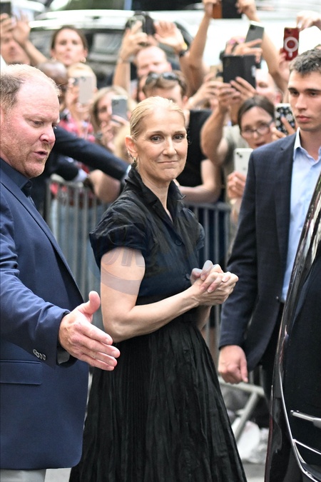 Céline Dion à la sortie de l'hôtel Royal Monceau à Paris avant l'ouverture des Jeux Olympiques (JO) de Paris 2024, à Paris, France, le 24 juillet 2024. Céline Dion leaving the Royal Monceau hotel in Paris before the opening of the Paris 2024 Olympic Games (JO), in Paris, France, July 24, 2024.