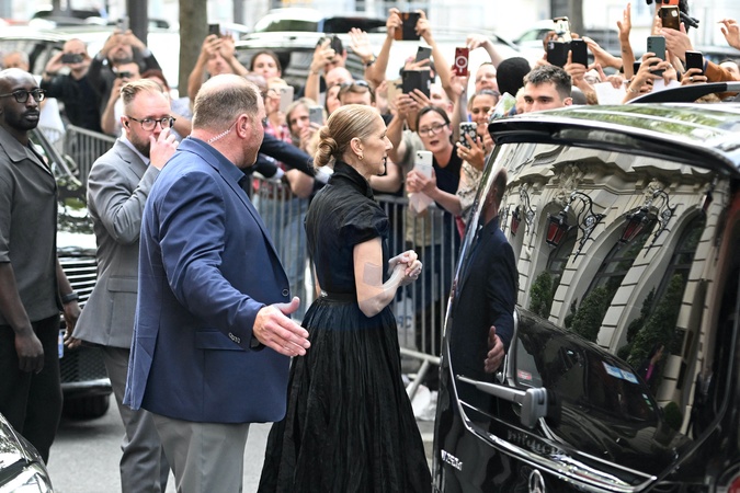 Céline Dion à la sortie de l'hôtel Royal Monceau à Paris avant l'ouverture des Jeux Olympiques (JO) de Paris 2024, à Paris, France, le 24 juillet 2024. Céline Dion leaving the Royal Monceau hotel in Paris before the opening of the Paris 2024 Olympic Games (JO), in Paris, France, July 24, 2024.