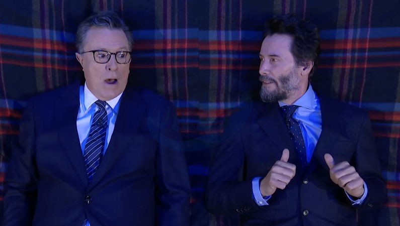 Keanu Reeves sur le plateau de l'émission "The Late Show With Stephen Colbert" à New York