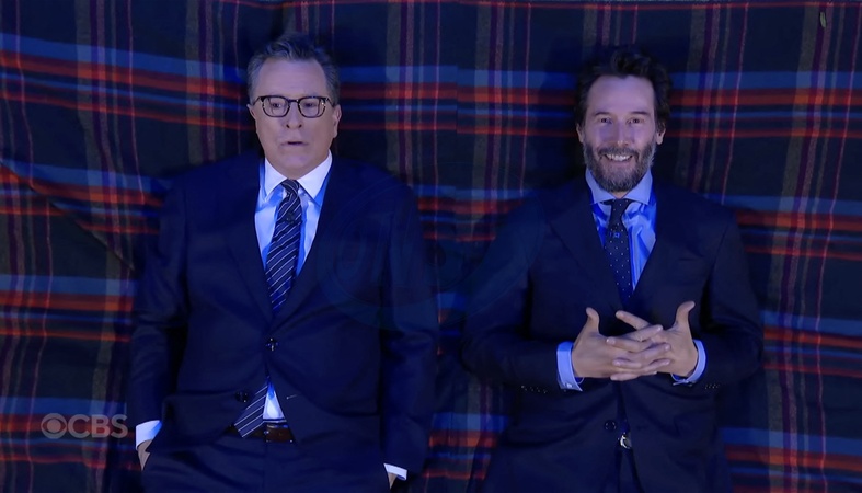 Keanu Reeves sur le plateau de l'émission "The Late Show With Stephen Colbert" à New York