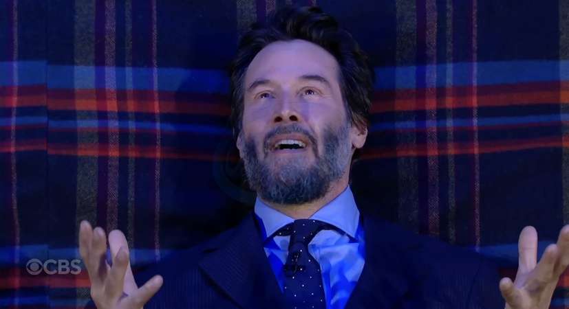 Keanu Reeves na planie „The Late Show With Stephen Colbert” w Nowym Jorku