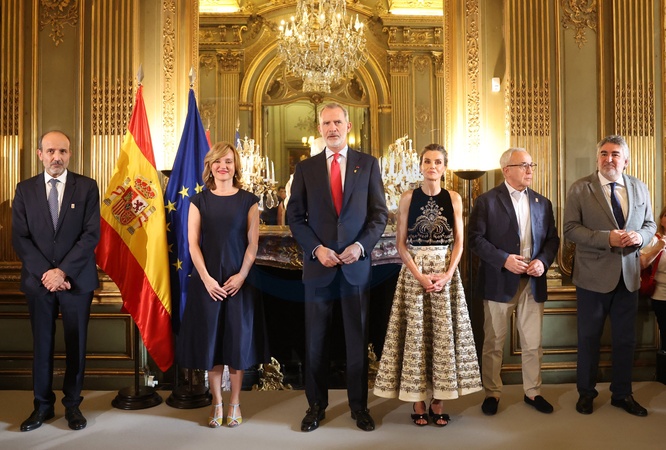 Le roi Felipe VI et la reine Letizia d'Espagne lors de la réception de l'équipe olympique espagnole à l'ambassade d'Espagne à Paris, à l'occasion des Jeux Olympiques Paris 2024