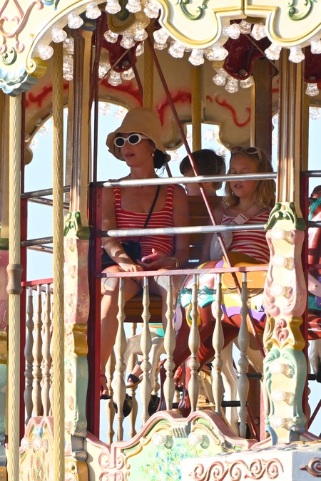Semi-Exclusif - No Web - Katy Perry et son fiancé Orlando Bloom avec leur fille Daisy se baladent sur le port de Saint-Tropez, le 14 juillet 2024. Merci de flouter le visage des enfants avant publication Semi-Exclusive - No Web - Katy Perry and her fiancé Orlando Bloom with their daughter Daisy stroll on the port of Saint-Tropez, July 14, 2024.