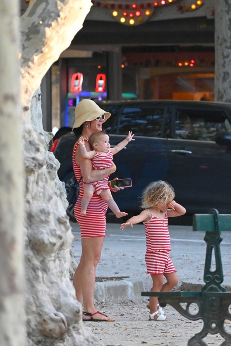 Semi-Exclusif - No Web - Katy Perry et son fiancé Orlando Bloom avec leur fille Daisy se baladent sur le port de Saint-Tropez, le 14 juillet 2024. Merci de flouter le visage des enfants avant publication Semi-Exclusive - No Web - Katy Perry and her fiancé Orlando Bloom with their daughter Daisy stroll on the port of Saint-Tropez, July 14, 2024.
