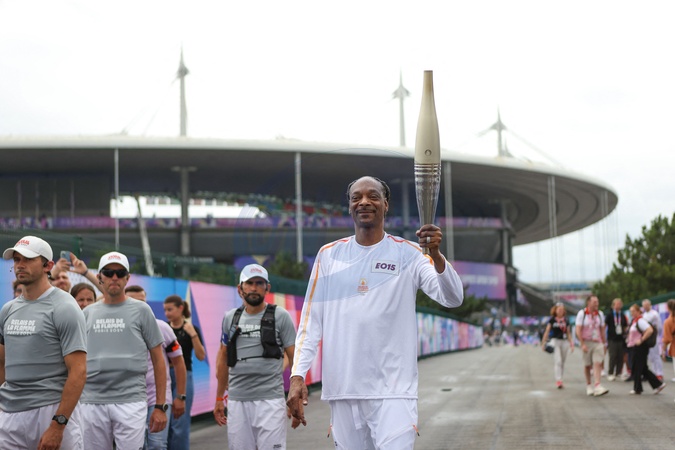 Snoop Dogg bierze udział w końcowych etapach sztafety ze zniczem olimpijskim w Saint-Denis