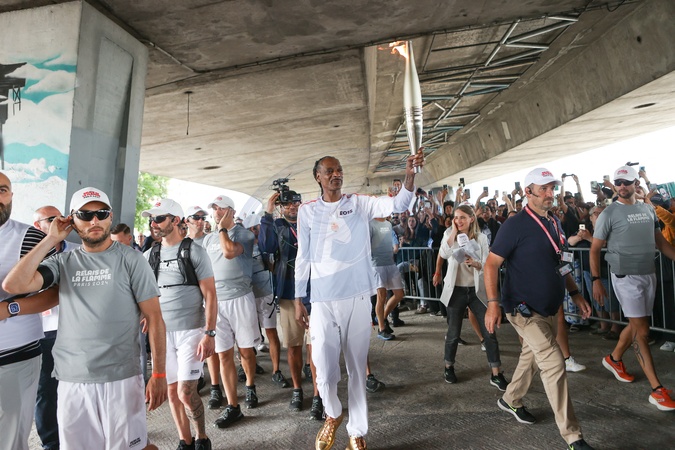 Snoop Dogg participe aux étapes finales du relais de la Flamme Olympique à Saint-Denis