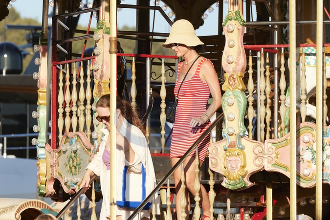 Semi-Exclusif - No Web - Katy Perry et son fiancé Orlando Bloom avec leur fille Daisy se baladent sur le port de Saint-Tropez, le 14 juillet 2024. Merci de flouter le visage des enfants avant publication Semi-Exclusive - No Web - Katy Perry and her fiancé Orlando Bloom with their daughter Daisy stroll on the port of Saint-Tropez, July 14, 2024.