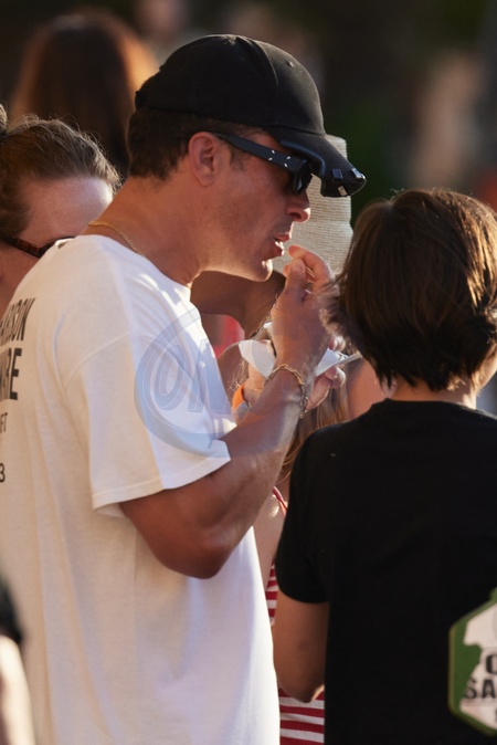 Semi-Exclusif - No Web - Katy Perry et son fiancé Orlando Bloom avec leur fille Daisy se baladent sur le port de Saint-Tropez, le 14 juillet 2024. Merci de flouter le visage des enfants avant publication Semi-Exclusive - No Web - Katy Perry and her fiancé Orlando Bloom with their daughter Daisy stroll on the port of Saint-Tropez, July 14, 2024.