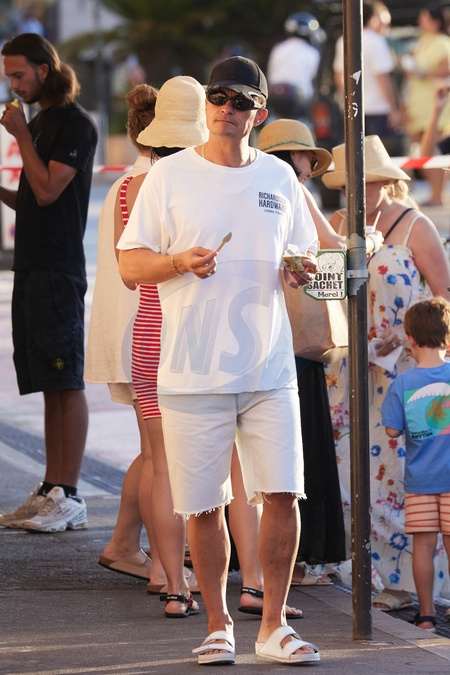 Semi-Exclusif - No Web - Katy Perry et son fiancé Orlando Bloom avec leur fille Daisy se baladent sur le port de Saint-Tropez, le 14 juillet 2024. Merci de flouter le visage des enfants avant publication Semi-Exclusive - No Web - Katy Perry and her fiancé Orlando Bloom with their daughter Daisy stroll on the port of Saint-Tropez, July 14, 2024.