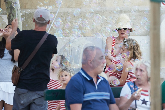 Semi-Exclusif - No Web - Katy Perry et son fiancé Orlando Bloom avec leur fille Daisy se baladent sur le port de Saint-Tropez, le 14 juillet 2024. Merci de flouter le visage des enfants avant publication Semi-Exclusive - No Web - Katy Perry and her fiancé Orlando Bloom with their daughter Daisy stroll on the port of Saint-Tropez, July 14, 2024.