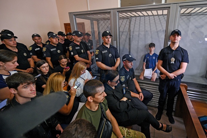 LVIV, UKRAINE - JULY 26, 2024 - Viacheslav Zinchenko, 18, who is suspected of murdering linguistic professor and former MP Iryna Farion, is kept in a glass-panelled box during a bail hearing at the Halytskyi District Court of Lviv, western Ukraine. Iryna Farion was shot in the temple outside her apartment building in Lviv at approximately 19:30 local time on July 19. Later that day, the professor died in hospital. The suspect, who is now facing charges of deliberate murder, was detained in Dnipro on July 25., Credit:Anastasiia Smolienko / Avalon