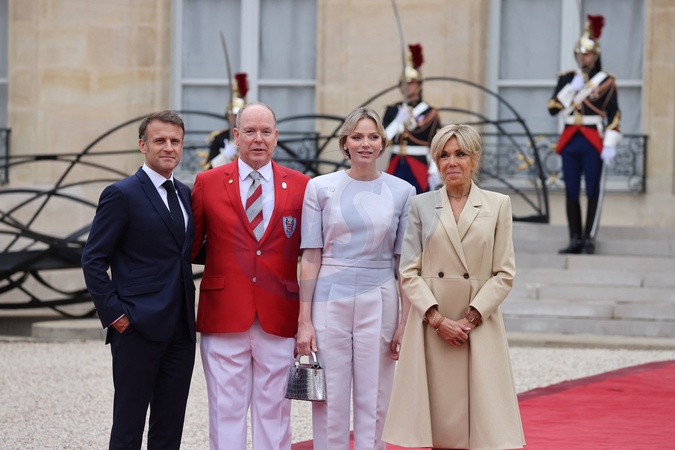 Le prince Albert II de Monaco et la princesse Charlène de Monaco - Emmanuel Macron, Président de la République Française, et la Première dame Brigitte Macron, accueillent les chefs d'Etat et de gouvernement présents à Paris pour la cérémonie d'ouverture des Jeux Olympiques de Paris 2024 (JO). Cette réception sera l'occasion pour la France de délivrer un message de paix et de tolérance alors que 10500 athlètes du monde entier seront réunis pour participer au plus grand événement sportif international. Paris, le 26 juillet 2024. © Dominique Jacovides/Bestimage Emmanuel Macron, President of the French Republic, and the First Lady Brigitte Maron, welcome the heads of state and government present in Paris for the opening ceremony of the Paris 2024 Olympic Games (Olympics). This reception will be an opportunity for France to deliver a message of peace and tolerance as 10,500 athletes from around the world gather to participate in the largest international sporting event. Paris, July 26th, 2024.