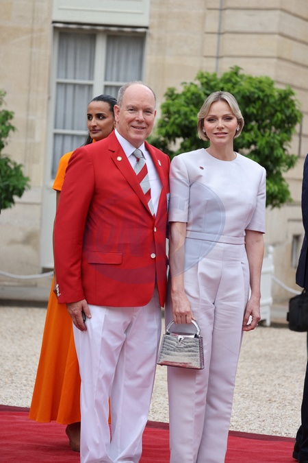 Le prince Albert II de Monaco et la princesse Charlène de Monaco - Emmanuel Macron, Président de la République Française, et la Première dame Brigitte Macron, accueillent les chefs d'Etat et de gouvernement présents à Paris pour la cérémonie d'ouverture des Jeux Olympiques de Paris 2024 (JO). Cette réception sera l'occasion pour la France de délivrer un message de paix et de tolérance alors que 10500 athlètes du monde entier seront réunis pour participer au plus grand événement sportif international. Paris, le 26 juillet 2024. © Dominique Jacovides/Bestimage Emmanuel Macron, President of the French Republic, and the First Lady Brigitte Maron, welcome the heads of state and government present in Paris for the opening ceremony of the Paris 2024 Olympic Games (Olympics). This reception will be an opportunity for France to deliver a message of peace and tolerance as 10,500 athletes from around the world gather to participate in the largest international sporting event. Paris, July 26th, 2024.