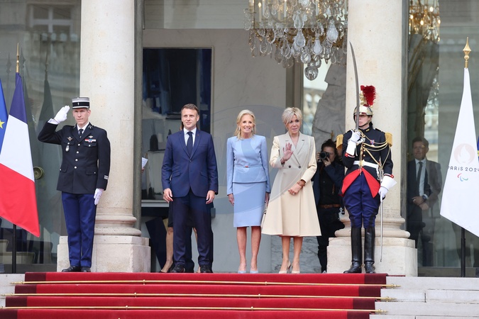 Jill Biden - Emmanuel Macron, Président de la République Française, et la Première dame Brigitte Macron, accueillent les chefs d'Etat et de gouvernement présents à Paris pour la cérémonie d'ouverture des Jeux Olympiques de Paris 2024 (JO). Cette réception sera l'occasion pour la France de délivrer un message de paix et de tolérance alors que 10500 athlètes du monde entier seront réunis pour participer au plus grand événement sportif international. Paris, le 26 juillet 2024. © Dominique Jacovides- Pierre Perusseau /Bestimage Emmanuel Macron, President of the French Republic, and the First Lady Brigitte Maron, welcome the heads of state and government present in Paris for the opening ceremony of the Paris 2024 Olympic Games (Olympics). This reception will be an opportunity for France to deliver a message of peace and tolerance as 10,500 athletes from around the world gather to participate in the largest international sporting event. Paris, July 26th, 2024.
