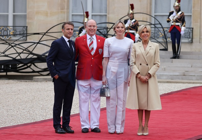 Le prince Albert II de Monaco et la princesse Charlène de Monaco - Emmanuel Macron, Président de la République Française, et la Première dame Brigitte Macron, accueillent les chefs d'Etat et de gouvernement présents à Paris pour la cérémonie d'ouverture des Jeux Olympiques de Paris 2024 (JO). Cette réception sera l'occasion pour la France de délivrer un message de paix et de tolérance alors que 10500 athlètes du monde entier seront réunis pour participer au plus grand événement sportif international. Paris, le 26 juillet 2024. © Dominique Jacovides- Pierre Perusseau /Bestimage Emmanuel Macron, President of the French Republic, and the First Lady Brigitte Maron, welcome the heads of state and government present in Paris for the opening ceremony of the Paris 2024 Olympic Games (Olympics). This reception will be an opportunity for France to deliver a message of peace and tolerance as 10,500 athletes from around the world gather to participate in the largest international sporting event. Paris, July 26th, 2024.