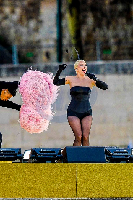 Lady Gaga en répétition de l'ouverture des jeux Olympiques (JO) de Paris 2024 sur la Seine à Paris, France, le 26 juillet 2024. © Pierre Perusseau/Besrtimage Singer Lady Gaga performs during the opening ceremony of the Paris 2024 Olympic Games on the Seine River in Paris, France, July 26, 2024.
