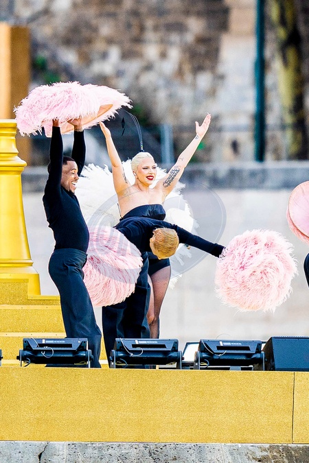 Lady Gaga en répétition de l'ouverture des jeux Olympiques (JO) de Paris 2024 sur la Seine à Paris, France, le 26 juillet 2024. © Pierre Perusseau/Besrtimage Singer Lady Gaga performs during the opening ceremony of the Paris 2024 Olympic Games on the Seine River in Paris, France, July 26, 2024.