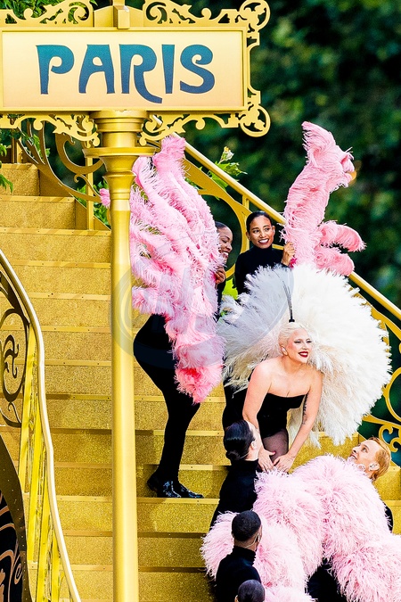 Lady Gaga en répétition de l'ouverture des jeux Olympiques (JO) de Paris 2024 sur la Seine à Paris, France, le 26 juillet 2024. © Pierre Perusseau/Besrtimage Singer Lady Gaga performs during the opening ceremony of the Paris 2024 Olympic Games on the Seine River in Paris, France, July 26, 2024.