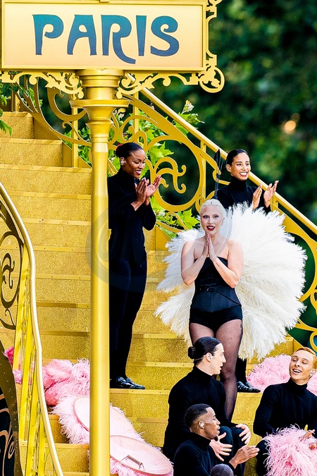 Lady Gaga podczas próby otwarcia Igrzysk Olimpijskich w Paryżu w 2024 r. (OG) na Sekwanie w Paryżu