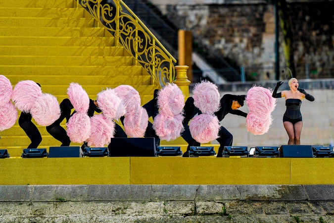 Lady Gaga podczas próby otwarcia Igrzysk Olimpijskich w Paryżu w 2024 r. (OG) na Sekwanie w Paryżu