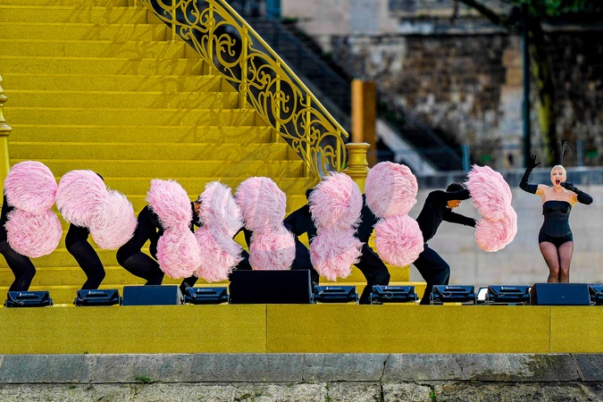 Lady Gaga podczas próby otwarcia Igrzysk Olimpijskich w Paryżu w 2024 r. (OG) na Sekwanie w Paryżu
