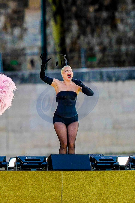 Lady Gaga en répétition de l'ouverture des jeux Olympiques (JO) de Paris 2024 sur la Seine à Paris, France, le 26 juillet 2024. © Pierre Perusseau/Besrtimage Singer Lady Gaga performs during the opening ceremony of the Paris 2024 Olympic Games on the Seine River in Paris, France, July 26, 2024.