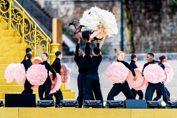 Lady Gaga podczas próby otwarcia Igrzysk Olimpijskich w Paryżu w 2024 r. (OG) na Sekwanie w Paryżu