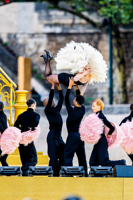 Lady Gaga podczas próby otwarcia Igrzysk Olimpijskich w Paryżu w 2024 r. (OG) na Sekwanie w Paryżu