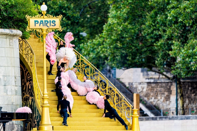 Lady Gaga podczas próby otwarcia Igrzysk Olimpijskich w Paryżu w 2024 r. (OG) na Sekwanie w Paryżu