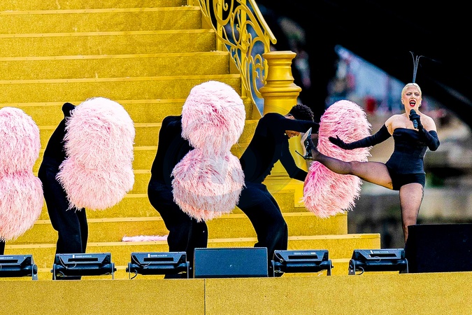 Lady Gaga podczas próby otwarcia Igrzysk Olimpijskich w Paryżu w 2024 r. (OG) na Sekwanie w Paryżu