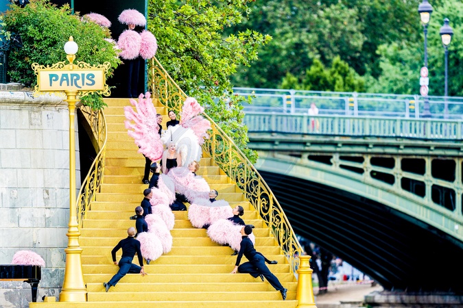Lady Gaga podczas próby otwarcia Igrzysk Olimpijskich w Paryżu w 2024 r. (OG) na Sekwanie w Paryżu