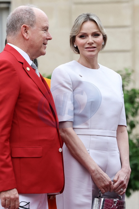 Le prince Albert II de Monaco et la princesse Charlène de Monaco- Emmanuel Macron, Président de la République Française, et la Première dame Brigitte Macron, accueillent les chefs d'Etat et de gouvernement présents à Paris pour la cérémonie d'ouverture des Jeux Olympiques de Paris 2024 (JO). Cette réception sera l'occasion pour la France de délivrer un message de paix et de tolérance alors que 10500 athlètes du monde entier seront réunis pour participer au plus grand événement sportif international. Paris, le 26 juillet 2024. © Stéphane Lemouton / Bestimage Emmanuel Macron, President of the French Republic, and the First Lady Brigitte Maron, welcome the heads of state and government present in Paris for the opening ceremony of the Paris 2024 Olympic Games (Olympics). This reception will be an opportunity for France to deliver a message of peace and tolerance as 10,500 athletes from around the world gather to participate in the largest international sporting event. Paris, July 26th, 2024. © Stéphane Lemouton / Bestimage