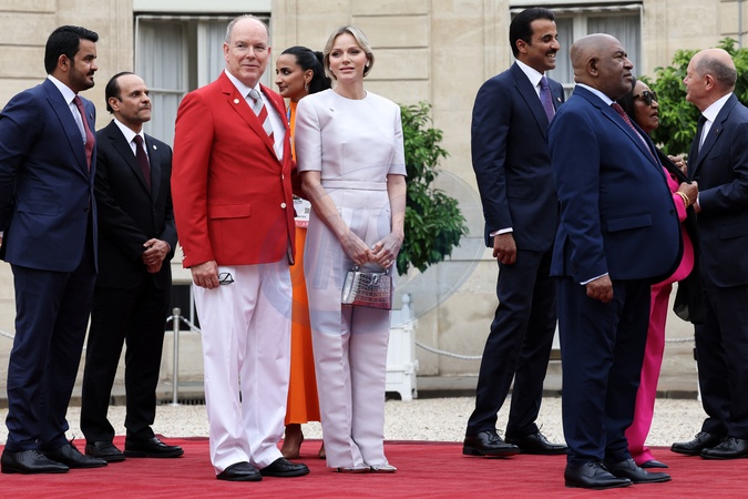 Le prince Albert II de Monaco et la princesse Charlène de Monaco - Emmanuel Macron, Président de la République Française, et la Première dame Brigitte Macron, accueillent les chefs d'Etat et de gouvernement présents à Paris pour la cérémonie d'ouverture des Jeux Olympiques de Paris 2024 (JO). Cette réception sera l'occasion pour la France de délivrer un message de paix et de tolérance alors que 10500 athlètes du monde entier seront réunis pour participer au plus grand événement sportif international. Paris, le 26 juillet 2024. © Stéphane Lemouton / Bestimage Emmanuel Macron, President of the French Republic, and the First Lady Brigitte Maron, welcome the heads of state and government present in Paris for the opening ceremony of the Paris 2024 Olympic Games (Olympics). This reception will be an opportunity for France to deliver a message of peace and tolerance as 10,500 athletes from around the world gather to participate in the largest international sporting event. Paris, July 26th, 2024. © Stéphane Lemouton / Bestimage